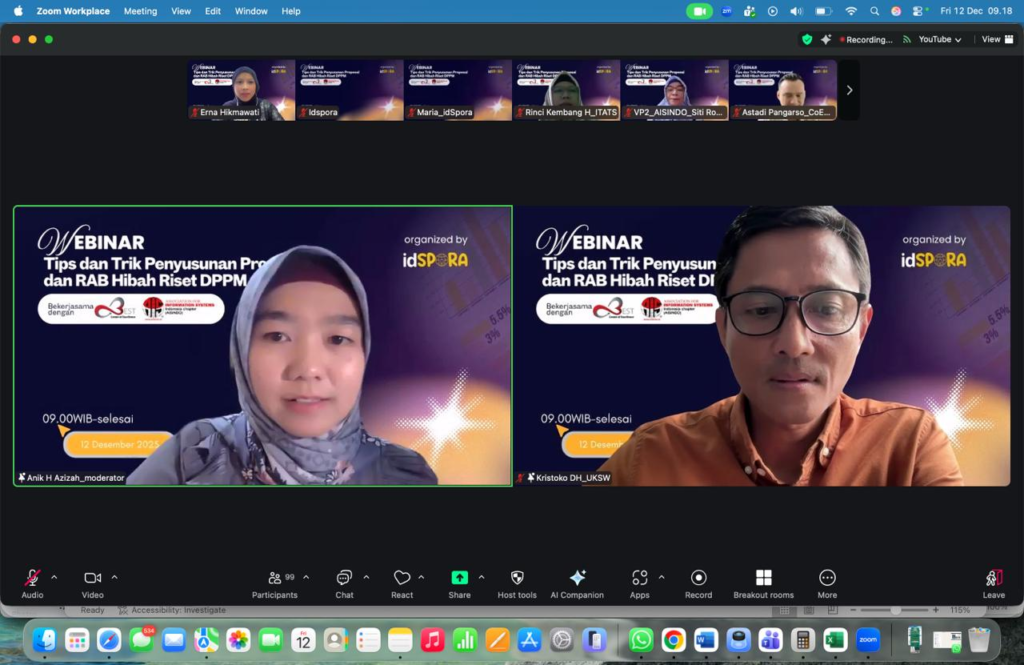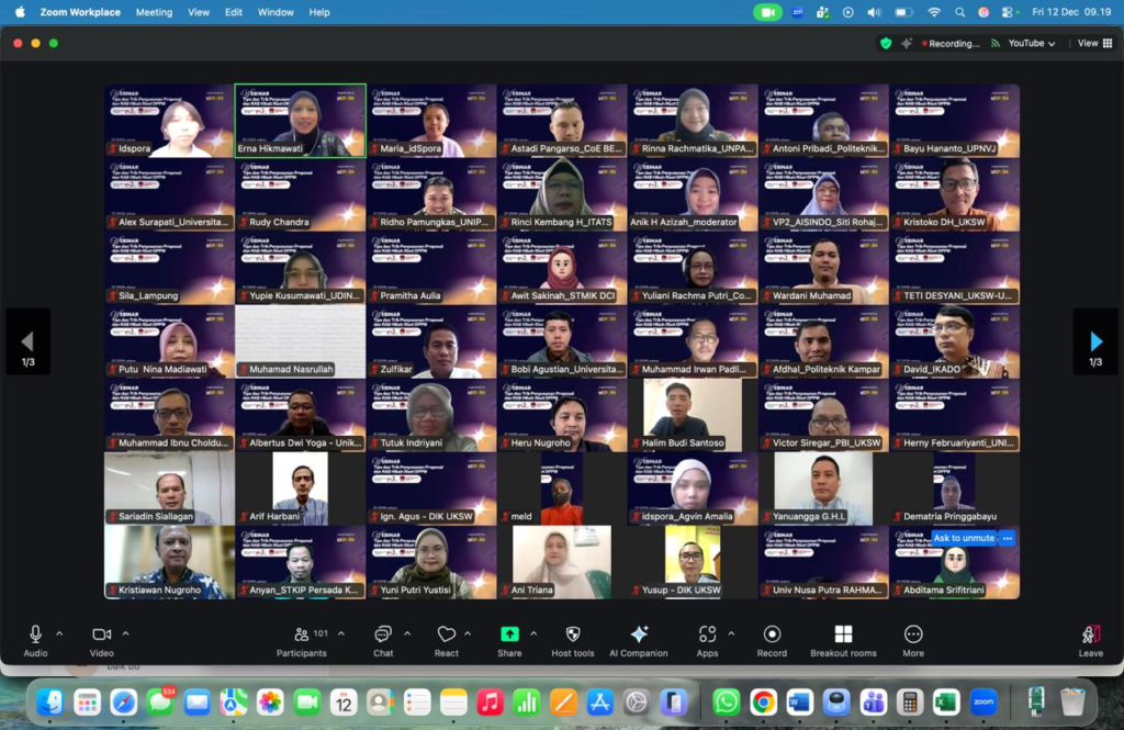 Jakarta, 12 Desember 2025 – Dalam upaya mendukung pengembangan penelitian dan pengajuan hibah riset, BEST – Center of Excellence Sustainable Governance, AISINDO, dan IdSpora menggelar webinar bertajuk “Tips & Trik Penyusunan Proposal dan RAB Hibah Riset DPPM”. Acara ini akan berlangsung pada Jumat, 12 Desember 2025, pukul 09.00 – 11.00 WIB melalui platform Zoom Meeting.